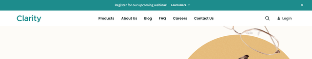 The primary master page template includes a header with navigation, branding, search, and an announcement banner. Clarity plans to use this template for most pages in their site.